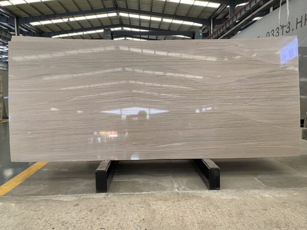 Characterized by a natural beige background interlaced with fine gray and brown lines, Wood Grain Quartzite offers the elegance of wood in a stone form. Its polish brings out a sleek, refined texture ideal for luxury finishes.